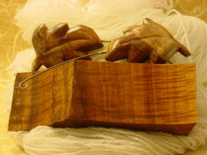4) The realization that I also use a variety of local Oregon woods for my carved hooks (wood is a fiber too! ) Yes…I do have a smattering of so-called exotic woods from afar, but current count of Oregon woods numbers 16 & growing: Apple, Cherry, Driftwood, Fir, Hazelnut, Holly, Lilac, Manzanita, Maple, Madrone, Myrtle, Pear, Plum, Walnut, Willow, Yew. Hoorah for supporting the local economy!