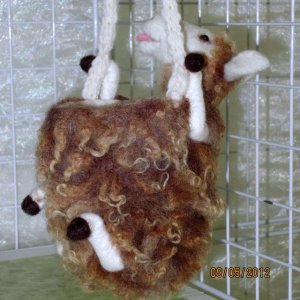 Please reserve one of the Orange hanging bag sheep for me at OFFF. That is if you will do that. Where are you going to be at OFFF?