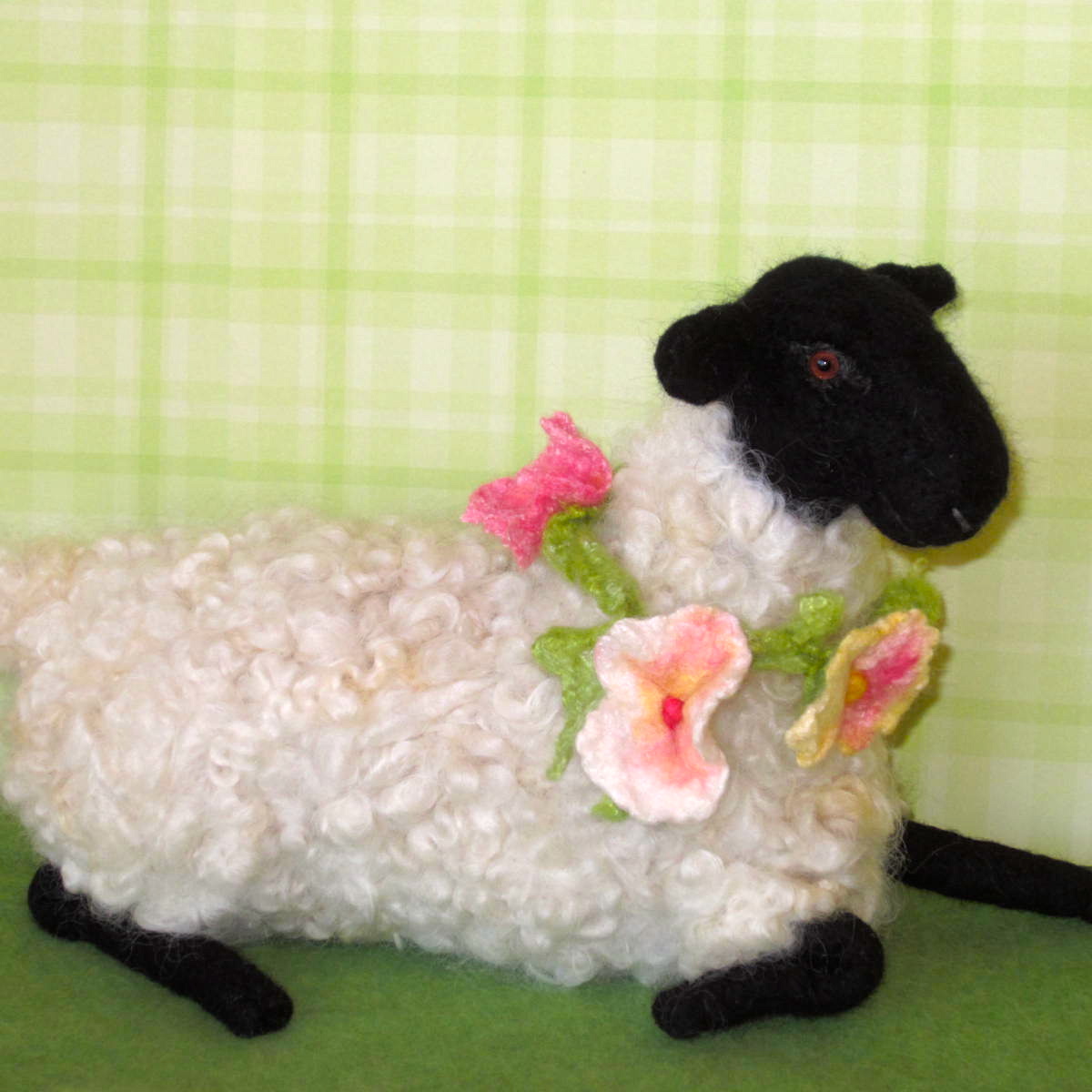 Reclining Suffolk Sheep, bedecked in beautiful blooms