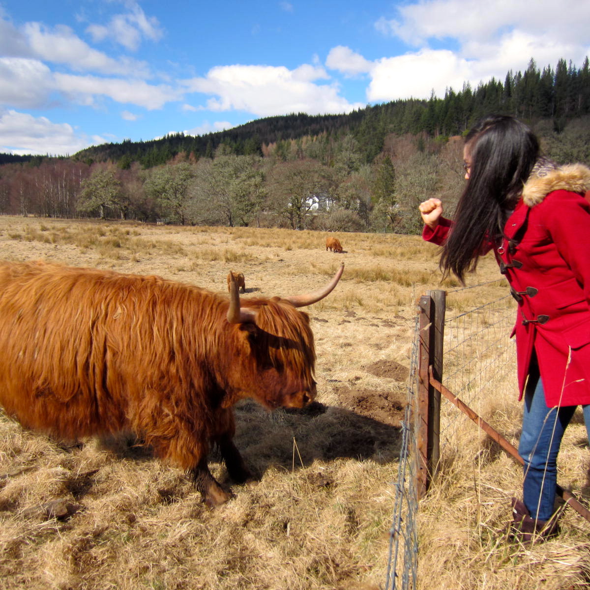 3rd stop: a roadside pause.… en route from Inverness to Loch Ness, & on to Oban bay, Jenna suddenly squeals “Oh LOOK! It’s a Hamish! Can we pull over?” Apparently she is smitten by the cuteness of Scottish Highland Cattle. It might be our only chance to see them up close! And, there really is a famous Hamish.