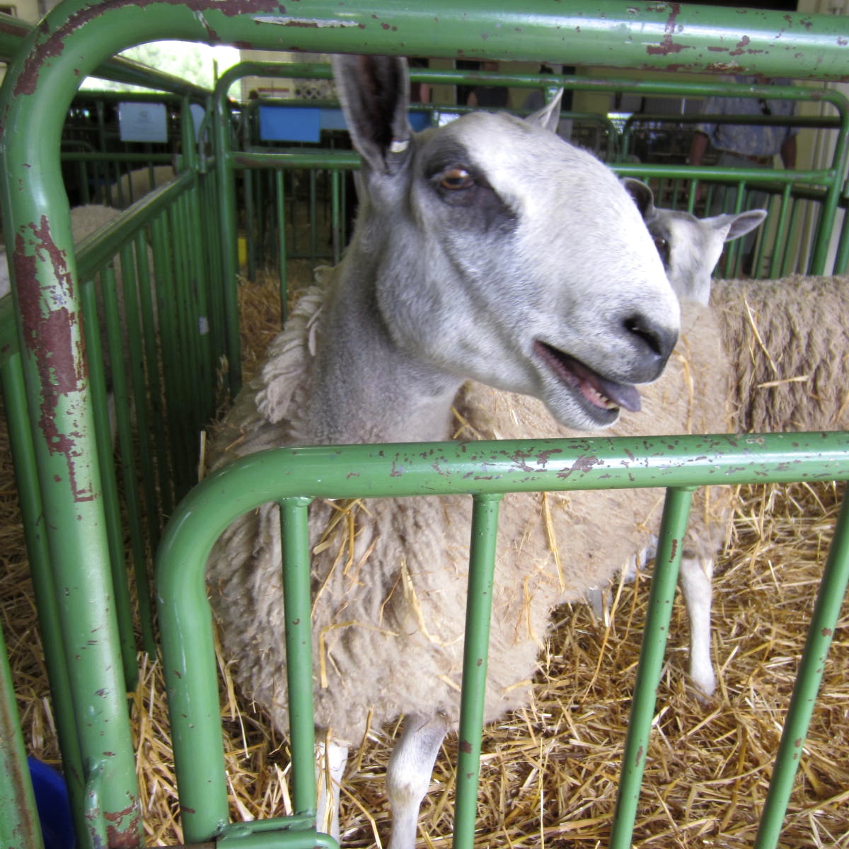And a quick dash thru the sheep barn, to see breeder friends and their critters. Here is one of Robina Koenigs (Tumble Creek Farm) gorgeous Bluefaced Leicester. See how a bleating sheep sticks it’s tongue out? It cracks me up every time, and is the reason for the impudent tongue on my own Whimsical Ewe logo!