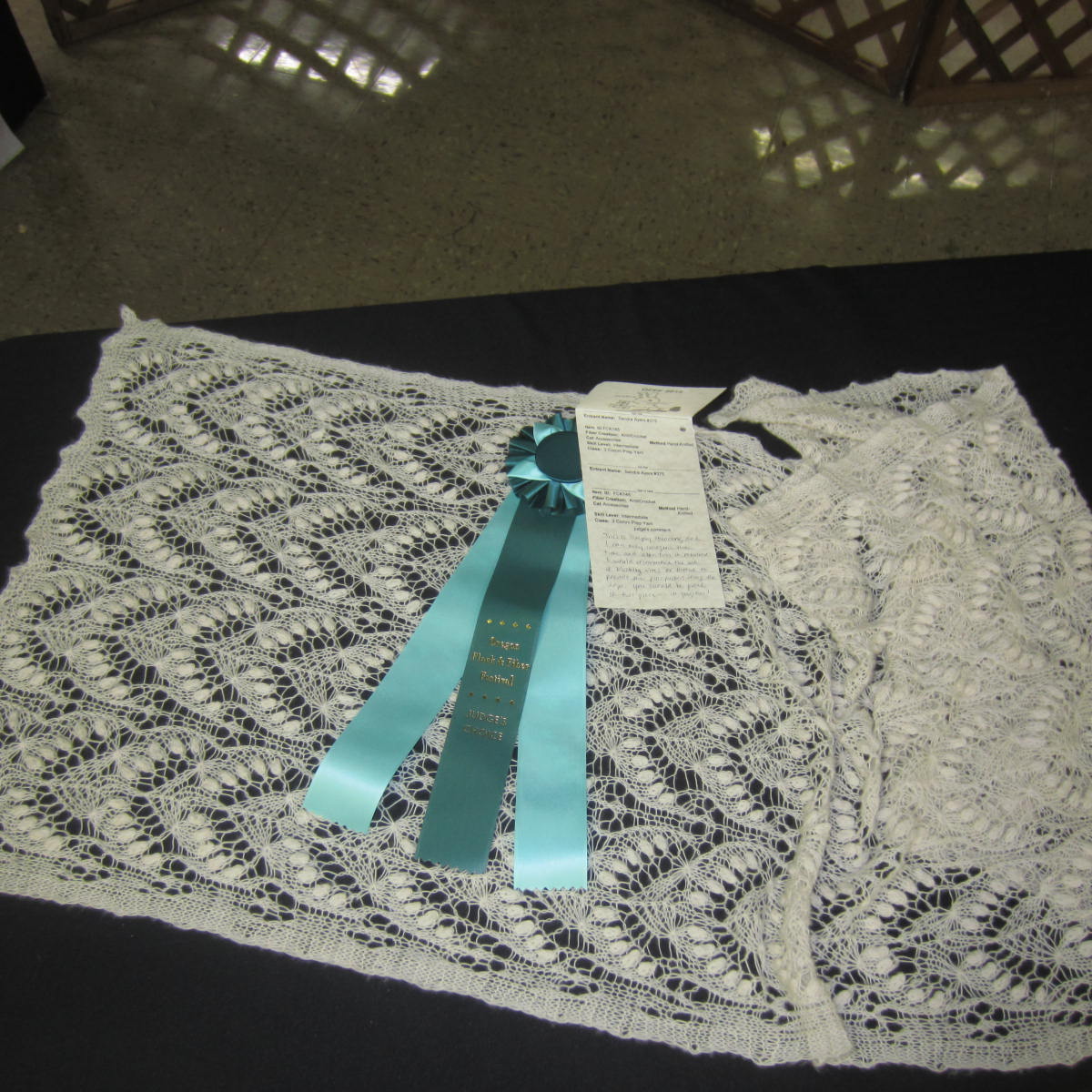 My Fiber Arts entry garnered 4 ribbons! “Oh my goodness” (she exclaims, fanning herself). Really, I had a ton o’ fun creating this diorama story of a chilly little rabbit in need of a new warm coat. Festival visitors chatted with us, exclaiming how much they enjoyed perusing all the little details. That it provoked so much laughter and delighted smiles is the greatest reward of all. There were many other fabulous examples of skillful ingenuity on display in the Fiber Arts Gallery, and here are some I admired and lingered over. The jaunty, cheerfully floral rug is my top favorite! Wouldn’t it be grand to sink your toes into that warm snuggly rug on a brisk winter day?