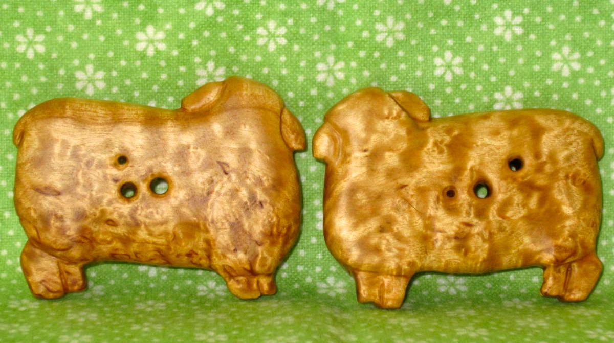 New SHEEP designs for a Diz (what is a Diz tool?) . The gorgeous blond wood is curly Masur Birch. The characteristic flecks & the wavy grain makes the wood shimmer like rumpled satin as it reflects light. Next up: the Sheep DIZ in the lovely Wild Olive, and a freeform Diz in colorful Camphor burl.