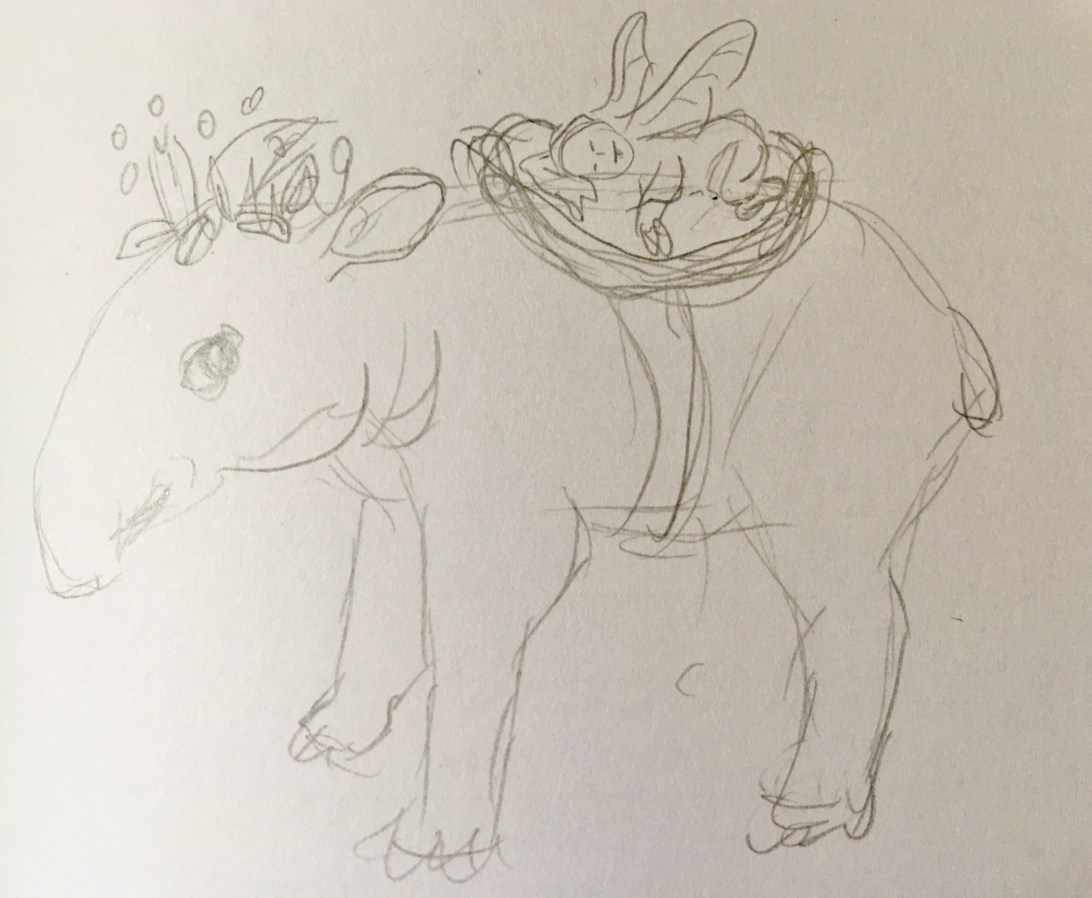 Tapir sketch with Baby fairy in nest on back