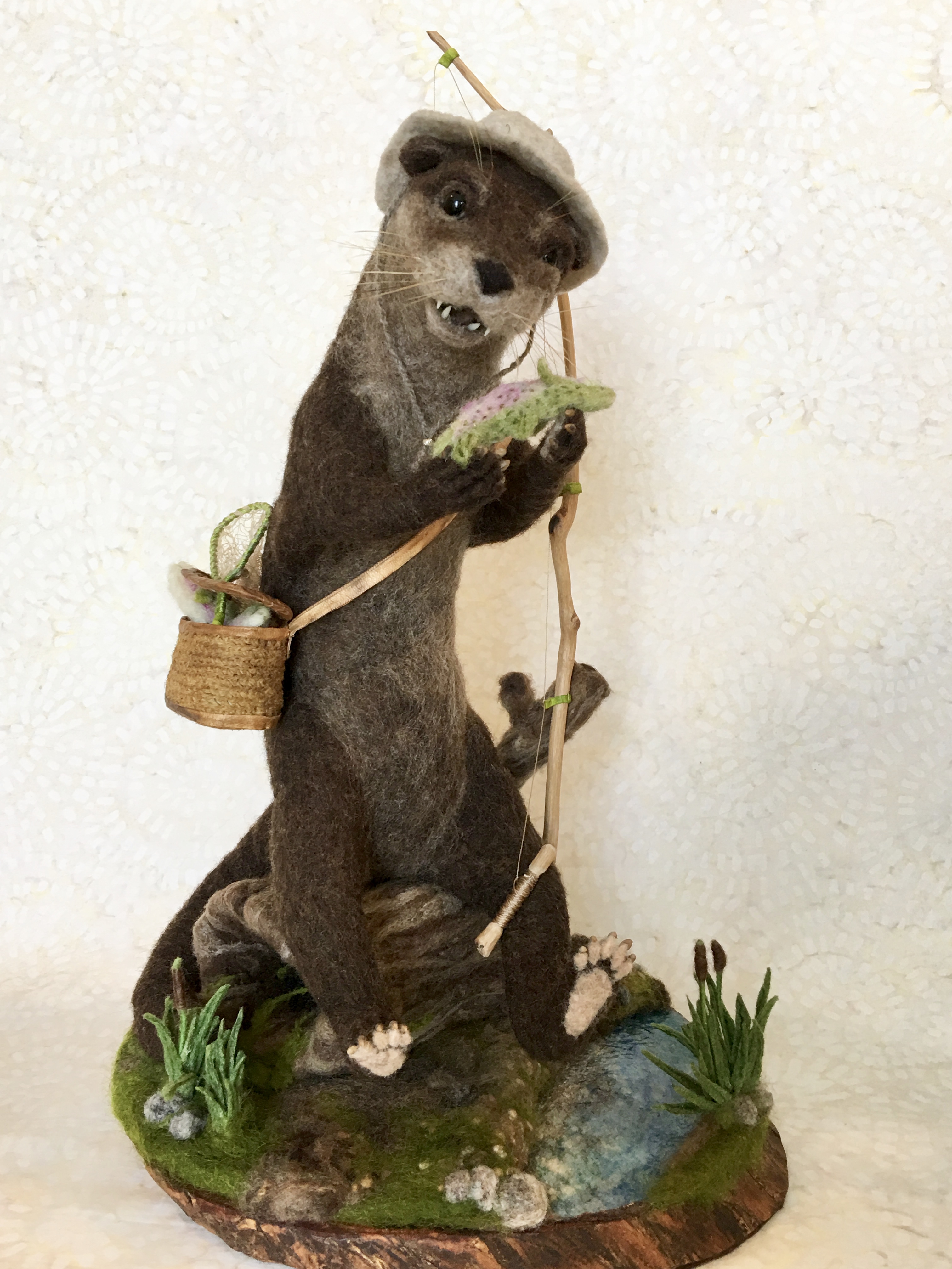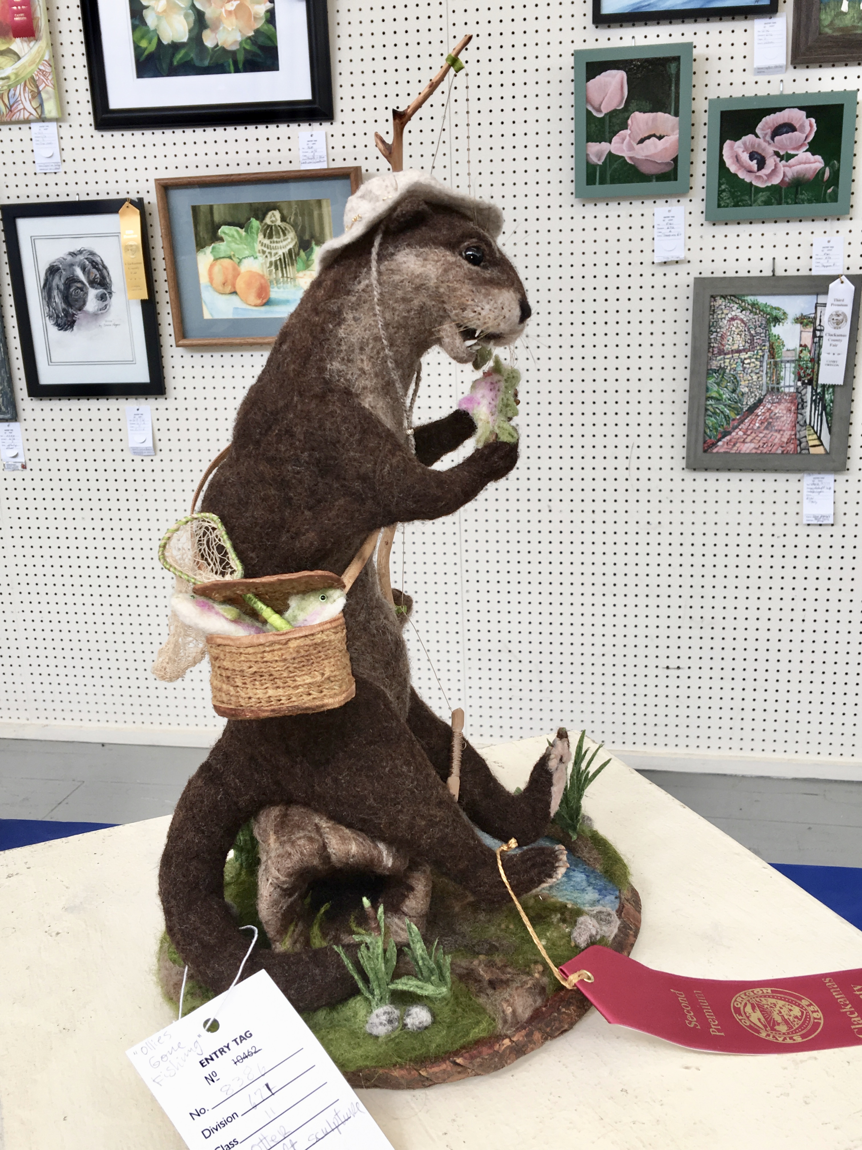 I love you back, BSG! In the Fiber Arts Division I entered not one, or two, but fully 3 large needle felted sculptures. Whew. The Jacob, and the Faerie Gryphon & Mouse were joined by a more recent creation: a large river otter sculpture titled “Ollie’s Gone Fishing.” The OTTER won People’s Choice Award, wherein the most viewers to the gallery voted with abundant heart stickers place on the items description form.