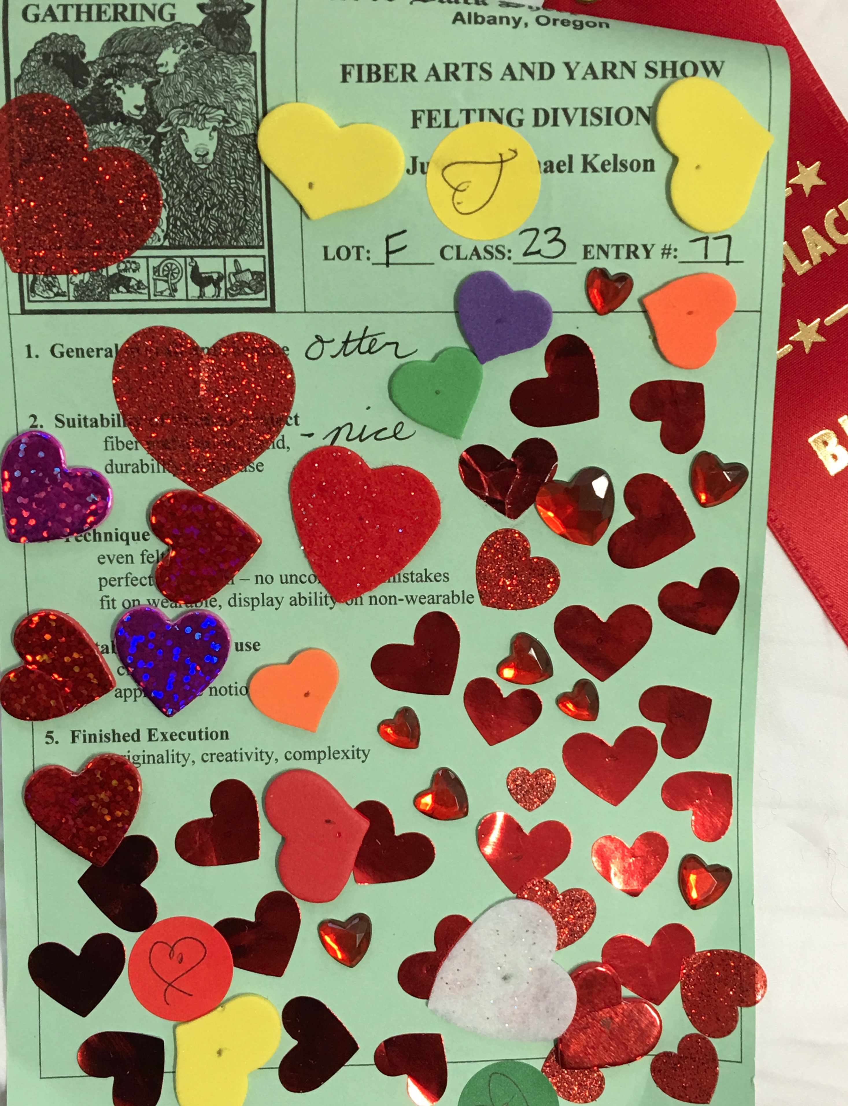 OREGON FLOCK AND FIBER FESTIVAL 2018 brought us multiple award ribbons in the Fiber Creations Gallery, felting category. This year the Celebrated Breed was Jacob, and the Celebrated Craft was felting. Just pure luck that I got my first small bit of Jacob fleece a couple months ahead of the show.